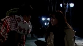 Talking about them, Yoon-Yi brings Dong-Ah to a place to see the stars through dark alleys (creepy!!). She hesitates a little but still follows him. They arrives at a hill and Yoon-Yi starts to talk about his childhood, where he’d come at the place to see the city lights in place of stars. He would watch people’s houses with envy and wished to shut off the lights that symbolized comfort to other people. Dong-Ah looks at him nervously and he wants to drop the subject about stars; instead, he wants to talk about them (double creepy). She suggests for them to go down as it’s getting cold and starts walking away, but he’s faster to block her way (triple creepy for him!).