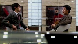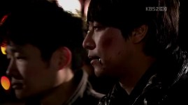 Suddenly, the lights are turned on, and boy, what a mess! Dong-Soo and Mu-Yeol with bruises, Eun-Jae is even bleeding! Dong-Soo is dragged away and he completely ignores Mu-Yeol. Reporter Go doesn’t let the opportunity to record the breaking news, but his face shows that he himself can’t believe what’s happening in front of him.
