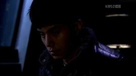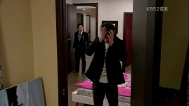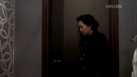 Ahjumma is bringing down a very big luggage (and I think I know what’s inside O.o) but as soon as she reaches the lobby, she sees Kevin standing outside the entrance. She then drags the bag back into the elevator and chooses to get out through the car park to avoid being caught by anyone.