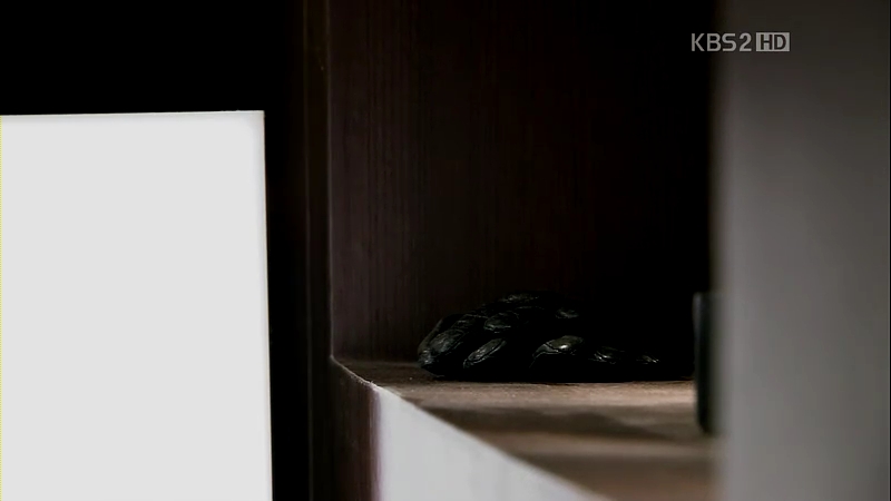 Mu-Yeol is still grieving alone in his bedroom. The ahjumma comes in, informing him about Manager Kim coming there. She tells him not to feel alone as she’s the one who understands him, even if others don’t (urgh!). Mu-Yeol nods lifelessly (this is hard to watch T^T) and thanks her. She smiles and promises that she’ll come earlier the next day before leaving. She accidentally (or deliberately?) leaves her gloves on the rack on her way out of the house.