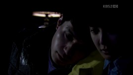 and leans on her shoulder (*speechless*). He sighs as she’s so late to come to him, but then she thanks him for leaning on her. Awww..that’s so sweet!