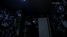 Mu-Yeol and Kevin search around her house and Kevin finds Yoon-Yi lying unconsciously in one of the rooms. Mu-Yeol goes into another room to find it’s the secret room full of his pictures on the four walls. Surprised? Yeah, he should feels like that.He then receives a call from Manager Kim: has has a hunch that the ahjumma is still inside the apartment building as she wasn’t caught in any of the CCTV around the area.