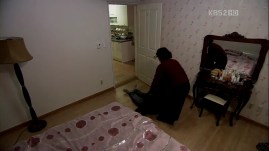 Mu-Yeol arrives at the ahjumma’s place, but no one answers the door although he keeps knocking. He then remembers her telling him about the password to enter her house. He punches in the numbers and got them correct and enters the house.Meanwhile, Eun-Jae enters the place alone (where is Dong-Ah??) and the ahjumma comes from behind before electrocuting her. The camera pans at her shoes.