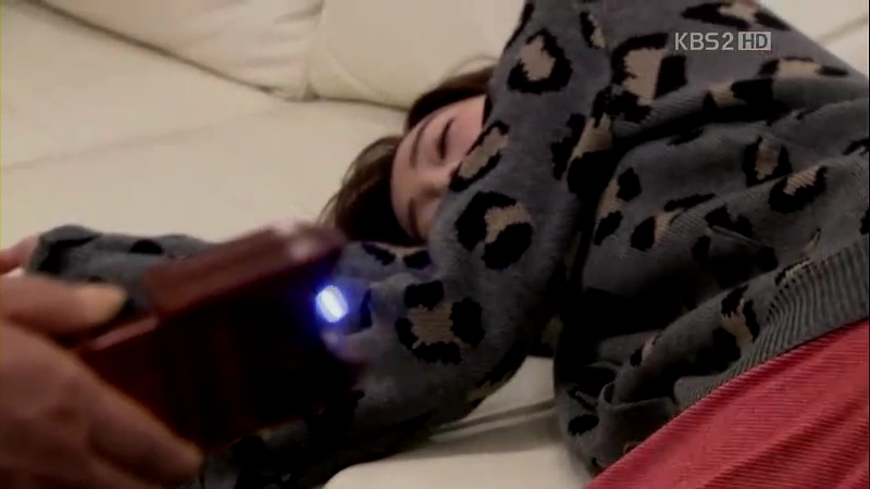 Kevin is still monitoring the CCTV and seeing the ahjumma goes to Jong-Hee’s house, he doesn’t suspect anything and goes out to do some stretching. The ahjumma has already entered the house and Jong-Hee is getting ready to go back to England. The ahjumma suddenly grabs her fingers and takes a look at the ring. She then electrocutes her and Jong-Hee falls onto the couch unconscious.