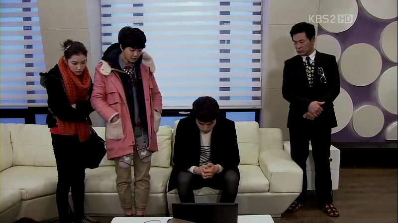 The next day, Mu-Yeol and Eun-Jae sit down together with Manager Kim and Dong-Ah to discuss about the stalker’s issue. Eun-Jae is behind Mu-Yeol for thinking that Dong-Soo is innocent, and Dong-Ah is with Manager Kim, thinking against them. They keep debating on the issue; Eun-Jae and Mu-Yeol being the Dumb Team and Manager Kim and Dong-Ah as the Smart Team. Mu-Yeol wants them to do rock-paper-scissors to decide whether to go with or against him (haha! ridiculous idea!) before Manager Kim asks him about Yoon-Yi, at the same time the ahjumma comes in.