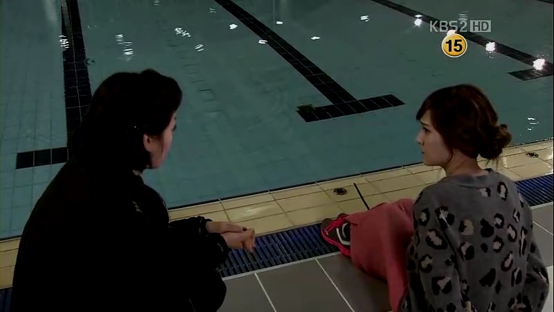 Jong-Hee is brought to a swimming pool and she’s still unconscious. Her phone rings; a call from Mu-Yeol is left unanswered while the ahjumma looks over her. The ahjumma then gets a phone call from Mu-Yeol but she ignores it. Jong-Hee stirs and wakes up after hearing her phone rings. The ahjumma gets crossed when she calls her ‘imo’ (another term for aunt) and begins weeping about people not calling her by her name and she being so old. Jong-Hee is so cared when she looks at the water in the pool.