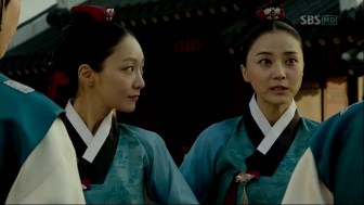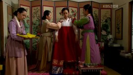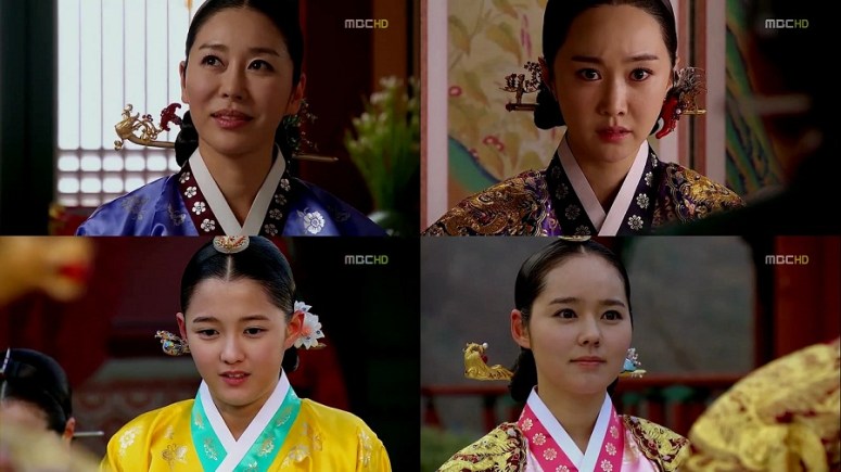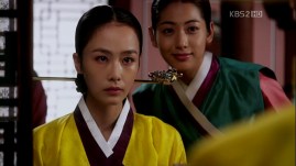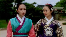 Princess Kyung Hye with samhuijan jeogori and Se Ryung with daran chima on.