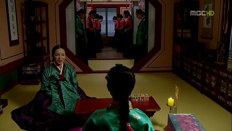 A color variation is used for Sejong’s special nain:they wear a dark jade jeogori here.