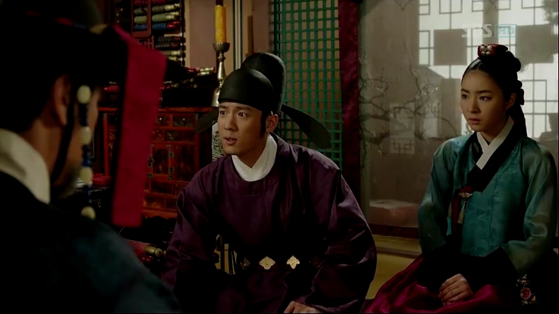 In the picture above, it is shown that only Grand Prince Suyang and Grand Prince Anpyung who wears the purple dalryeongpo while Prince Yangmyung wears a dark red dalryeongpo. The purple robe is probably for the princes whose mother is the queen and the dark red is for the princes whose mother is the concubine. For the prince consorts, there isn’t any rigid color set for them (as what I’ve found until now) . Royal Consort Jong wears a blue robe, while Heo Yeom is wearing a purplish red robe.