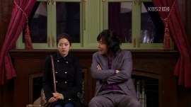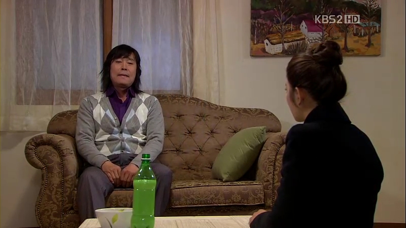 Soo-Mi tries to call the police but gets stopped by her father. Between his makgulli shots, Gwang-Chun tells her what he saw on that night when Kyung-Pil was killed by Yong-Bae. She tries to question whether the culprit was really Jang-Il’s father, but he knows the person is him. She asks why he doesn’t report it to the police, but he has endless record of frauds, thus the police won’t believe his statement. He did the ritual for Sun-Woo to get some clues as he couldn’t say anything directly to him. Soo-Mi wants him to promise that this matter is not to be told to anyone as her measure to protect Jang-Il.