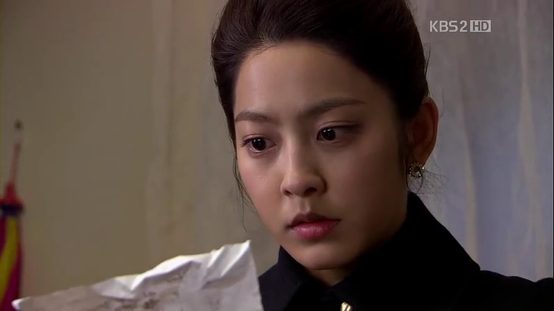 They reach home and Soo-Mi refuses to eat anything. She lies on the couch and sees the crumpled letters under the table. She takes them and read the contents, only to find herself surpised at his father’s attempt to extort money from Jang-Il’s father. She hides them from Gwang-Chun and resumes her reading when he goes into her room.