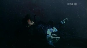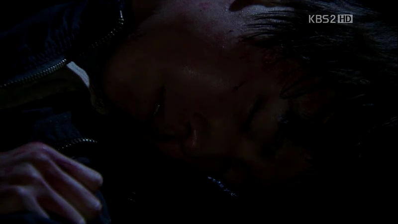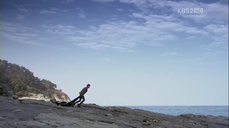 As Sun-Woo is trying to catch his breath between his pains, Jang-Il can’t help but shed his tears for betraying his friend. He drags Sun-Woo’s unconscious body and leaves him there. He stops and returns to Sun-Woo’s side with a determined look. He pulls Sun-Woo and throws him into the sea. Jang-Il cries in despair on the land as Sun-Woo sinks deeper into the sea; unconsciousness taking over him.