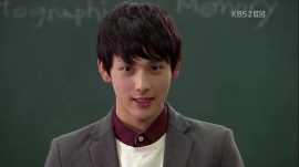 Jang-Il starts his first class and the lecturer proceeds to call some students to share their views about their topic, Photographic Memory. Ji-Won’s name gets called but she’s nowhere to be seen. Jang-Il looks a little sad, but a voice answers from the door. It’s Ji-Won who’s just arrived, making Jang-Il all happy and smiling. She shares about her first meeting with Sun-Woo and he smiles while looking at her. His smile fades a little when she says that the boy she met was totally her type.