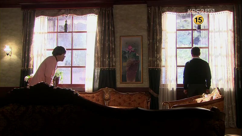 Without her pretty gowns and frocks, Ji-Won now dresses casually, moving into a small room. She looks around as Mrs Ma is practicing her singing with her daughter, Park Yun-Joo (Bae Seul-Gi). She wants to go abroad to further her studies in business in order to help Chairman Jin later. Mrs Ma admits she won’t marry his husband if he was poor.