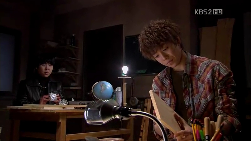 Cut to the boy, who’s recovering from his injuries and starts working with the wood although his complexion still looks quite bad. He hears someone at the door and arms himself with a long wood, but it’s only Geum-Jool, running into the place to ask for Sun-Woo’s help. He tends his bleeding hand as Geum-Jool tells him about the Jang-Taek fellow, who has formed alliance with the thugs. Then, he also tells Sun-Woo about his father’s death: he knew a taxi driver who drove Kyung-Pil to Chairman Jin’s place before he was found dead.