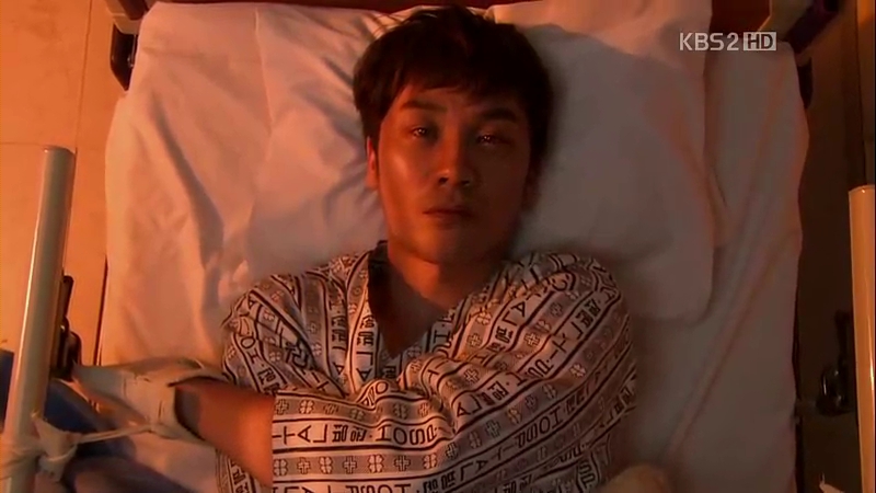 The next day, Sun-Woo looks a lot better and he has been transferred to the ward. Other patients are laughing over ‘Mr Bean’ showing on the television as he sits alone on his bed (I’m actually afraid he’ll get angry and do something to the television..).
