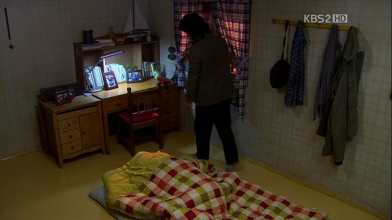 They walk together up the stairs to Sun-Woo’s house and he wants to go up by himself. Geum-Jool lets him to do so but watches over him carefully. He reaches the rooftop house and Geum-Jool leaves him for a moment to bring Gwang-Chun and Soo-Mi over. Sun-Woo enters his house and he reaches for the photo frame, still in its original position on the desk. His face falls and he’s just about to go down the memory lane with his late father when someone knocks on the door.