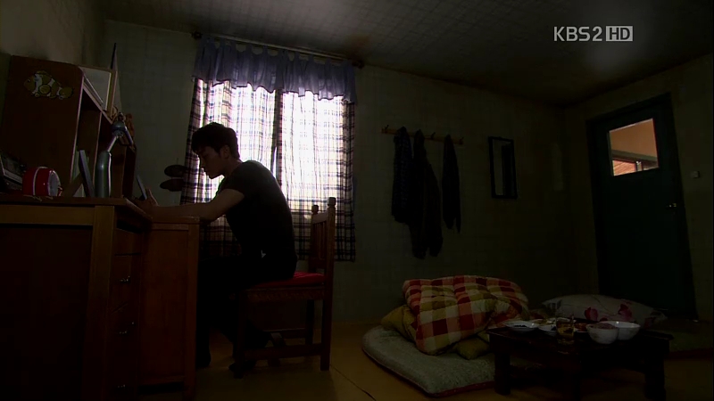 Sun-Woo sits alone in the dark, holding his father’s photo. He accidentally trips over the dishes and falls onto the comforter, sighing with his inability to see anything. He sits outside as Geum-Jool is doing his laundry (how nice of him!). Sun-Woo suddenly starts talking about Jang-Il and he remembers his best friend. He decides to write a letter with Geum-Jool writing it as he says aloud what he wants to say. Geum-Jool at first follows what he says but soon he writes something different. He then leaves to send the letter and Sun-Woo realizes that he forgets to include something important. Word by word, he recites the sentences: