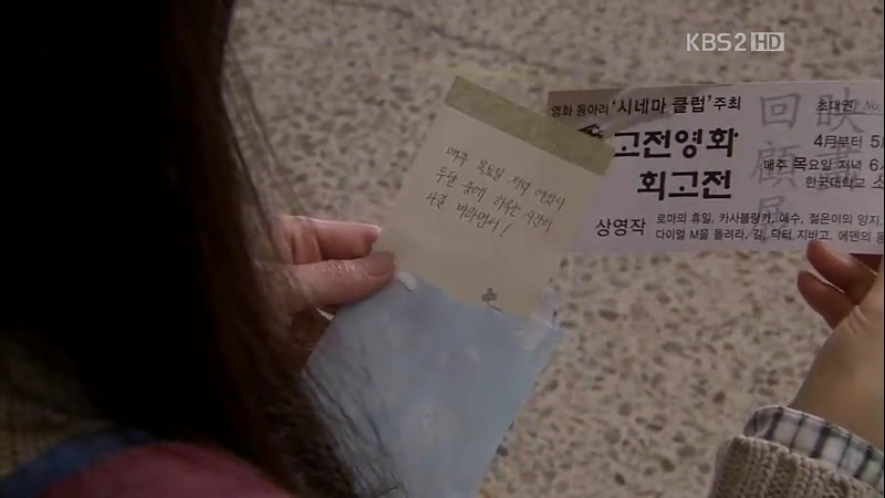 Later at the library, Ji-Won receives a letter from Jang-Il with the movie ticket. He waits for her with high hopes but till the movie comes to the end, she doesn’t turn up. He’s a little disappointed and leaves the coffee he prepared for her behind. He gets excited when his friend tells him that he got a letter in the mailbox at the library. He’s excited, thinking that it’s from ji-Won, but it’s not.