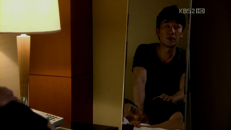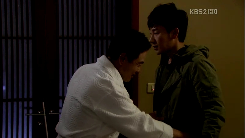 Chairman Jin welcomes Sun-Woo and he lets him enter the hotel room. Sun-Woo starts to massage him as he explains that he’s just a trainee. He compliments Chairman Jin’s voice but he suddenly says that he recognizes it. Chairman Jin keeps silent and then starts telling about his son who died two years ago (is he referring to Sun-Woo himself?). He asks how Sun-Woo got blind and his answer: he fell down a cliff. Sun-Woo also says that his parents died when he was young, proving to Chairman Jin that his memories haven’t returned completely.
