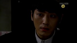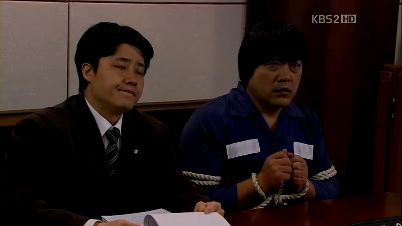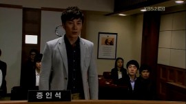 And we get the dashing Jang-Il in his prosecutor’s suit, explaining about the proofs of a murder case to the judges. He confidently asks for life sentence for the murderer and it turns out that the defendant is his own father. Oh my. Yong-Bae keeps calling his name as Jang-Il freezes on the spot. He turns to face the plaintiff and sees Sun-Woo standing there, pointing towards his direction and accuses Jang-Il of hitting him and trying to kill him before the crowd applauds.