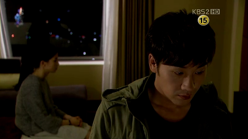 She asks him whether her feelings for him aren’t love and he retorts, saying that they’re just sympathy for him. He tells her to find someone else and leaves, but Ji-Won hugs him from the back.