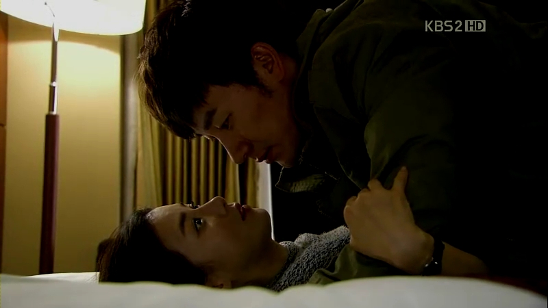 But the man is actually Ji-Won. She really wants to see him and has no other choice. He decides to leave and Ji-Won pleads for him not to go. She is willing to help him with his studies, but Sun-Woo thinks she’s just using him to make herself feel less unfortunate. He wonders why they are together in the hotel room and pushes her onto the bed though she only wants to talk with him.