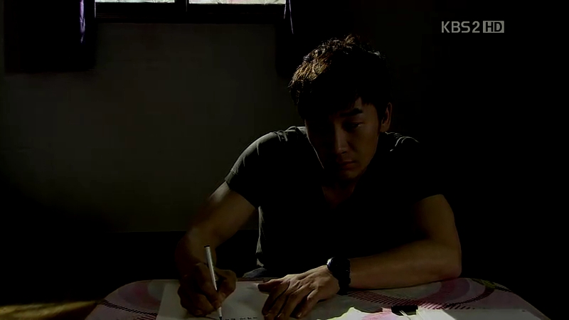 He’s actually using that address to send a letter to Sun-Woo anonymously, telling him about Jang-Il father being his father’s murderer. He also sends another letter to Chairman Jin, warning him about the secret. Chairman Jin realizes that Kyung-Pil was still alive when Yong-Bae hung him on the branch as Gwang-Chun saw him struggling for his life.He seems relaxed and keeps the letter inside his drawer.