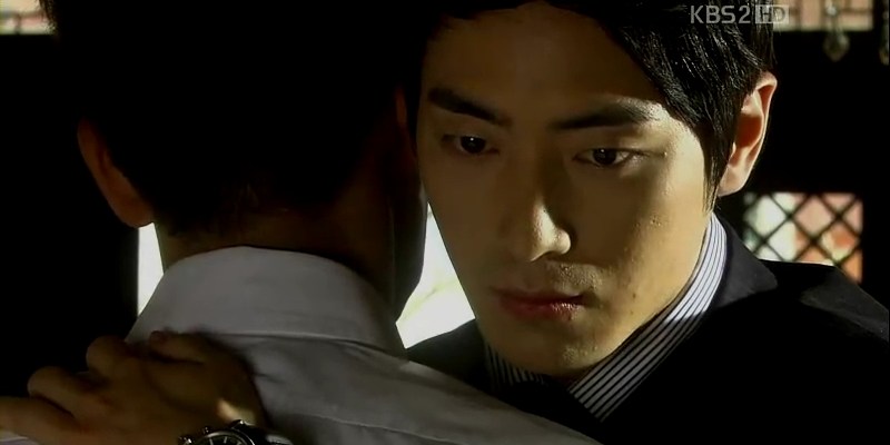 He goes back to his room and starts writing a letter for Ji-Won, telling her to wait for him. As soon as he finishes it, Tae-Joo and his assistant arrive at his place. He tells them to look around if he has missed anything and Tae-Joo takes a look at the letter. They leave but Geum-Jool suddenly comes after Sun-Woo didn’t contact him before. Sun-Woo hugs his friend and says his goodbye. He makes Geum-Jool promises not to tell anyone about him leaving the place and promises to buy a gold necklace for him when he comes back.