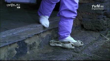 Notice the daenim used to tie the baji is visible on Boong-Do’s left leg and it has similar color to the baji itself, made from the fabric used to make the baji. He has his boseon on and he’s about to put on the jipsin.