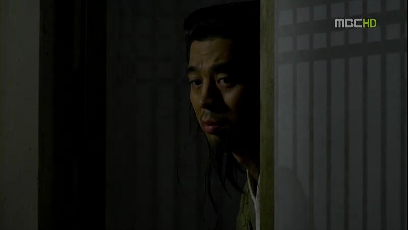 Lord Choi’s man gets his ‘reward’ for his failure: a block of wood thrown at his head, making his forehead bleeds. Joo wal enters the gate and runs into that man and sees him holding his forehead. He then looks at his father’s room’s direction and smirks.