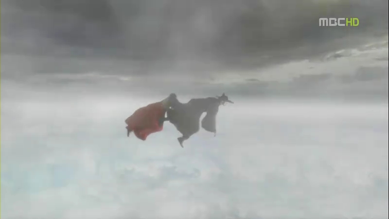 The figure glanced at Moo young and after the reaper nodded at him, he flew back to the black hole behind. A light shone through an opening, and Arang followed after Moo young towards the light. Then, she’s flying in the sky with him the moment she opened her eyes.