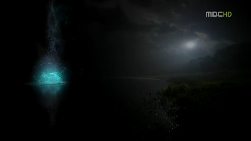 Arang took some time to think over, and of course, she decided to do it. So she’s standing in between the two rulers under a large yinyang bubble floating above her. They gathered their powers and made a yinyang ball surrounding her and the ball gradually covered her and shrunk. Hades was still worrying that it would be problematic but Jade Emperor assured him that he trusted his own instinct. He grabbed that ball and threw it towards the yinyang bubble. The next thing we see, the ball fell down to the world, where it went straight into a lake.