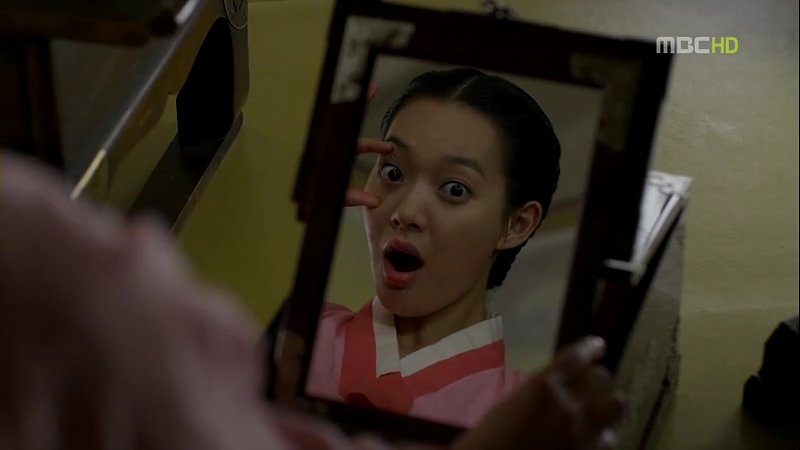 Arang sits in the room but soon, she decides go somewhere: to Seo rim’s room. She greets Lee Seo rim, saying that she’s returned as she looks around the room that used to be hers. She looks into the mirror in wonder to see her own face being reflected there. Arang makes some faces and again, she’s truly a human now!