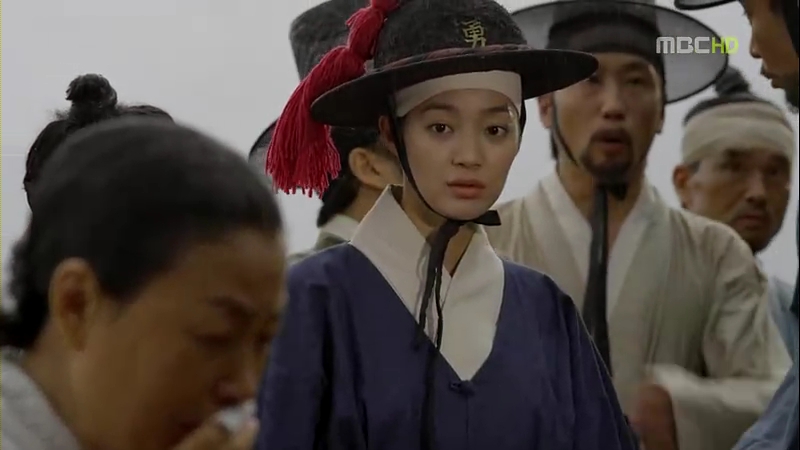 Unknown to her, Joo wal follows her until they arrive at the burial site. Eun oh is just about to leave after he decides that Arang will find out the truth about her death by herself, since she’s now a human. However, he’s bright enough to recognize Arang in the guard attire and starts to worry that the nanny might recognize her as she starts to argue with the three officers. Arang realizes that the nanny is behind her and Eun oh is staring at her. She runs away when the officers start to ask who’s her, so she has the guards and officers chasing her.