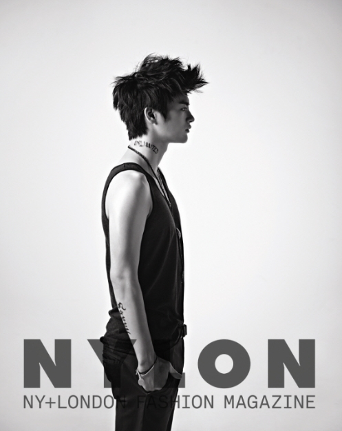 This Nylon photos remind me of his photo shoot before with 1st Look. Maybe it’s the concept or because of the black and white photos, but the focus for Nylon is his fake tattoos.