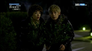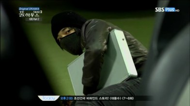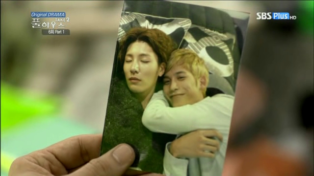 Paparazzi So saw Man-ok riding her scooter with Kang-hwi and he immediately followed them. They arrived at the Full House and sneaked into the compound. Paparazzi was happy that he finally found TAKE ONE’s secret house and brought out his disguise clothes. Kang-hwi and Man-ok managed to enter the house but Tae-ik suddenly approached them, forcing Man-ok to push Kang-hwi into the basement. Kang-hwi fell down the stairs in the process while Man-ok tried to act like nonchalantly in front of the puzzled Tae-ik, who was angry because she seemed so at ease despite Kang-hwi’s scandal. Man-ok tried to sneak out but Paparazzi So caused the alarm to go off, scaring both of them. Paparazzi So ran away while Man-ok successfully went out through the secret entrance. Meanwhile, Kang-hwi was unconscious from the fall and regained his consciousness on the next day, only to find his leg injured. Man-ok treated him and went to fetch some of his clothes in his room. She’s too late as Kang-hwi’s things were being thrown out of the house but Man-ok managed to retrieve some of his clothes. Tae-ik went to meet LJ and overheard the secretary informing LJ that Kang-hwi didn’t leave the country yet.