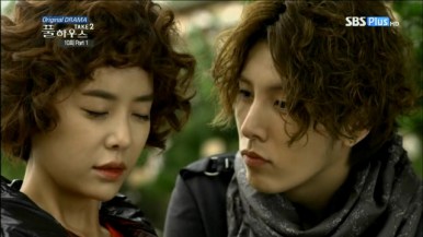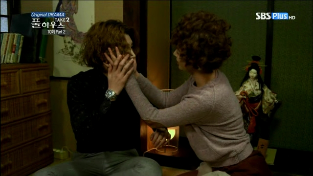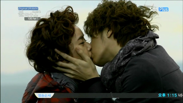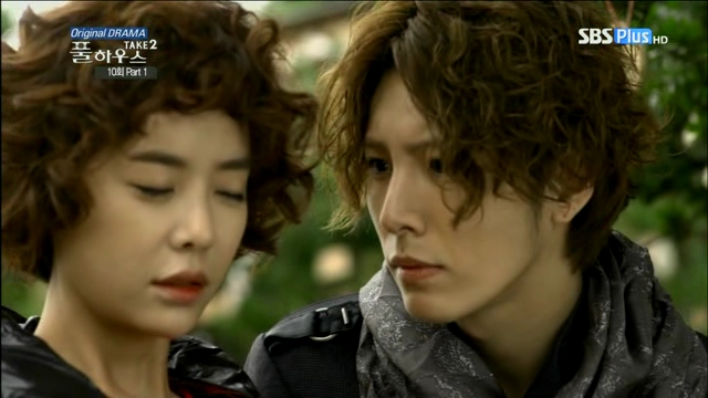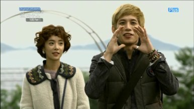 While they were walking together, he asked why she came to look for him and she couldn’t really give the answer. They decided to return to the guest house. On the ferry, Tae-ik kept staring at Man-ok’s lips and he got closer and closer to kiss her, but she suddenly woke up. He feigned seasickness and both of them went to get some fresh air. Tae-ik again asked the reason why she came to find him and she in return asked what was the reason he decided to give up on Full House. He then kissed her, right on her lips.
