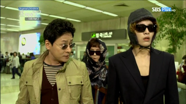 Kang-hwi, who was also scheduled to return to Korea on the same day, saw Tae-ik and Man-ok getting all close and comfortable with each other. LJ tried to talk about his condition to make Man-ok his stylist, but he refuse to negotiate with him about it. They arrived in Korea shortly after that and the fans, including the Paparazzi Trio, were already waiting for Kang-hwi. It’s completely different for Tae-ik and Man-ok, who had to disguise themselves. They were puzzled as why there wasn’t any reporter around. The reporters were actually there but busy with Kang-hwi’s simple interview. As Full House was now in LJ’s possession, Man-ok wondered where Tae-ik would be staying for the time being. Manager Hwang brought them back to his messy house.