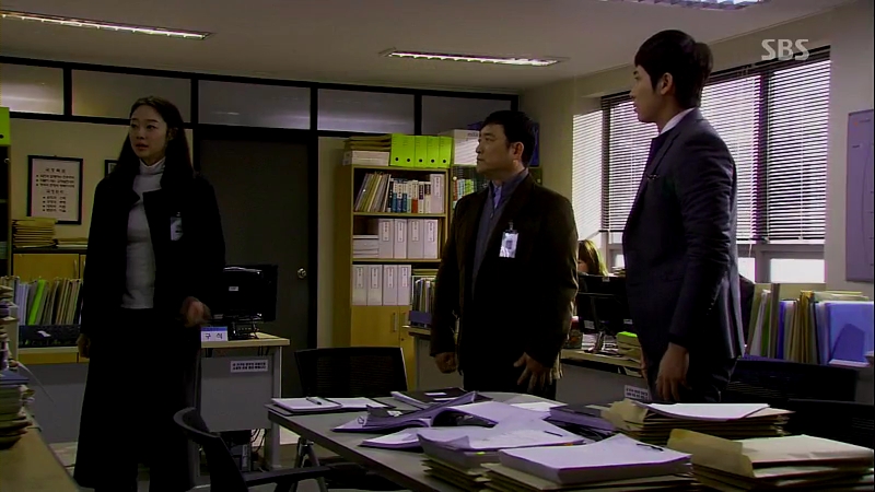 A meeting is held, with Ji-hoo on one side and Se-kwang on the other side, together with the other prosecutors. Chief Jo enters and he’s angry when Se-kwang’s team is still unable to locate their witness’ whereabouts as Ji-hoo is still unable to identify the corpse’s identity. When he goes out, he instantly gives the report to the ex-Mayor, all relieved to have both teams meeting dead end in their investigation. Ji-hoo approaches him, asking for additional manpower and he warns her to do her work properly.