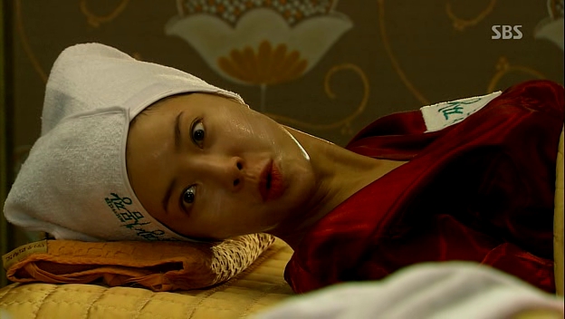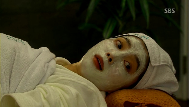 Jae-in tries to sneak out of the house but gets caught by Madam Bok. She manages to escape, saying that she has a date with Cha-don but her mother wants to see herself what she’s up to these days. Jae-in actually goes for a facial session and Bi-ryung is also there, talking continuously on the phone and screams when she’s hurt by the staff. Jae-in feels disturbed and tells her to go to public bath instead of making noise there and they start to argue, which ends up with Jae-in pouring the facial mask onto Bi-ryung’s face before leaving.