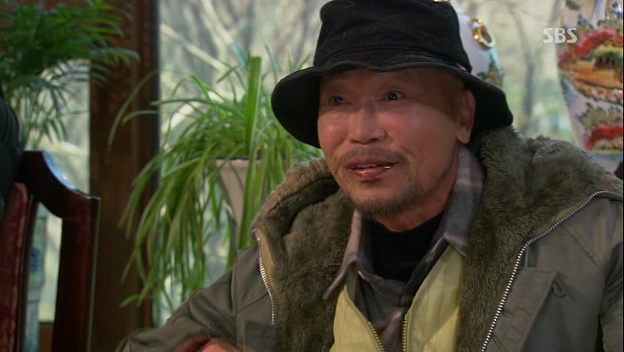 The beggar man is still there in front of Madam Bok’s house and he takes at look at the picture of him and the younger Madam Bok. He manages to avoid being hit by a motorcycle but another car hits him lightly. It’s Cha-don’s car and he’s worried that the man is hurt, but the man assures him that he’s alright and asks for some money. The man drops the picture and Cha-don picks it up. He brings the man for a treat at a restaurant and finds out that the man is indeed Madam Bok’s husband and Jae-in’s father. He then introduces himself as a famous saxophone player back then, known as the Gentleman of Jingogae. Cha-don decides to make him the fake gentleman in his plan.