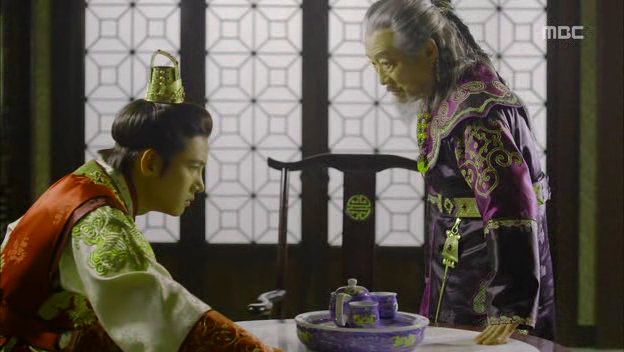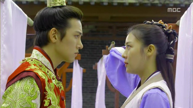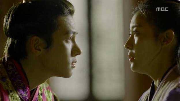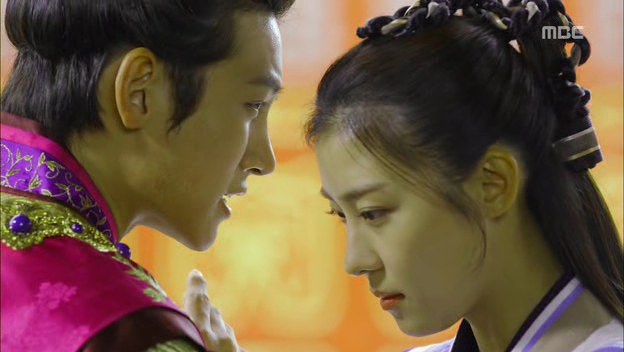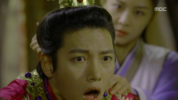 Ta-hwan…..oh, dearie Baby Emperor…I want to push you away and pull you into a big bear hug at the same time! He can be so clueless at times but that’s the reason to feel bad for him: because everything is moving against his will. He can’t even decide for himself about where to sleep and who to sleep with every night, the women keep talking about heirs and sleeping arrangement while the men were turning a blind eye against him. He’s like a puppet that is pushed and pulled from different directions and finally, he shows that he’s also capable of reaching a breaking point. Plus, he’s still a baby that needs proper guidance from someone he can look up to and that’s probably the reason why he keeps missing Seung-nyang, the only person who saw through his weakness but still extended her hand to him and believed him. The scene where he remembers the jump he made from the cliff actually made me tear up (..umm..I was sobbing actually) because he was that desperate for a source of courage and strength. Even Seung-nyang was affected by his sudden realization that she’s no longer the same person but it’s too easy (and still early for the sake of the length of the drama) for her to admit that she’s the one and only Seung-nyang.