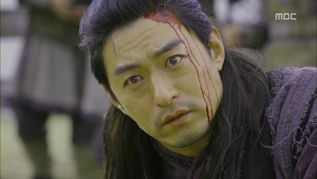 As for Yoo..well, he’s fighting off Byung-soo and he’s on the winning side for while until Byung-soo decided to use his hidden weapon. He destroyed Yoo’s wooden sword and hit him on the head using his wooden and lead sword. It seemed so painful and the force was strong enough to make Yoo went back and forth in between life or death. He saw Seung-nyang among the screaming soldiers, reminding him about the promise to come back alive in tears. He gathered his courage and hit Byung-soo with his fist as he saw the lead inside the wooden sword. Yoo was about to knock Byung-soo with the sword when Tapjahae blocked him but Yoo proved that Byung-soo played dirty; however, he couldn’t kill him off since Byung-soo had surrendered. He officially became the commander but reminded his people that he’s not doing it because of them; he’s fighting because he wanted to stay alive.
