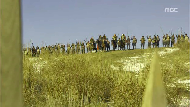 Yoo received a small feast as a reward for defeating the Turks for the time being and at the same time, Bi-soo was curious about his identity although Taltal’s name was famous among the Turks as the brain behind Baek Ahn’s strength. Yoo also realized that the horses in their possession were restless, thanks to Tapjahae’s horse that was suddenly acting up and threw him onto the ground. Byung-soo managed to lure some of the enemies for some information but the Turks continued to bother them with the noises. Yoo thought that the Turks didn’t plan to make the soldiers restless; instead, the noise was directed towards the Yuan’s horses, because the horses would be used during the battle. He got an idea to defeat the enemies before working together with then in order to conquer the Silk Road before the Yuan did.
