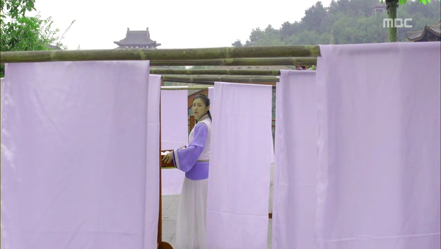 Seung-nyang ran into Dangkise on her way out to do the laundry and he’s so happy to be able to tease her. Ta-hwan witnessed their encounter from afar and he was about to brush it off as a casual one when he suddenly thought of something, prompting him to follow Seung-nyang to the clothing lines. He called out “Seung-nyang!”, just to check her reaction…and she looked around, trying to find the person who called her. She didn’t see him in between the clothes and he’s left wondering about the possibility of her being the same Seung-nyang from before. Ta-hwan ordered for Seung-nyang to be brought to him from Goryeo.