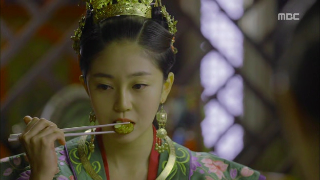 He went to Yeon-hwa, who was more than willing to sacrifice her own life for a better position in the palace. He handed the powder to her and she managed to put it into the ingredients for the dumpling soup for Lady Park. Dangkise watched her until she went to Lady Park but Dok-man saw him sneaking around the harem. Lady Park didn’t feel like eating the soup but ended up eating it, much to Yeon-hwa’s delight. Lady Park started to pee a lot and Dok-man found it strange, plus with Dangkise hanging around the harem earlier, he didn’t feel that it was a mere coincidence. He told Seung-nyang to take care of Lady Park but she realized that Lady Park might have consumed the tree powder.