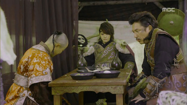 The border group was still planning their attack on the Turks and a few of the Yuan soldiers including Ja-chom went to spy on the Turk’s base camp. Yoo didn’t tell the Yuan officers about his secret of planting Eunuch Bang and Jeombakyi inside their enemy’s camp and Moo-song was worried about those two. Well, they’re enjoying their time with the Turks, eating as they discussed about their plan. Bi-soo went to meet them and they asked to see Batoru. They were surprised that the real Batoru was a woman but Eunuch Bang didn’t take a long time to convince Bi-soo into believing them, since he knew the real reason behind the noises for Yuan camp: it wasn’t meant for the soldiers but for the Yuan’s horses. The tactic was something that Bi-soo was trying to hide but she’s shocked that someone managed to see through her plan. Yes, that someone was our bright Yoo!