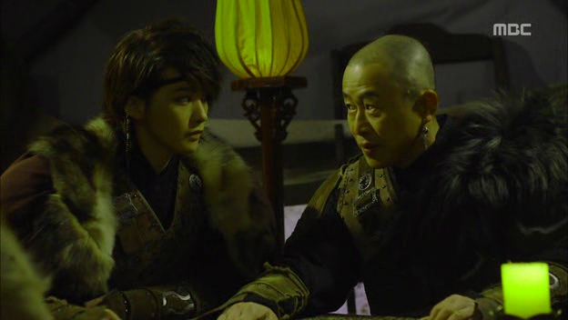 Yoo and the Yuan officers were discussing about their attacks on the Turks later and he discussed with Moo-song about letting their spies know about the exact time of the attack. The Yuan was planning to use the Goryeo people as a fake attack before attacking the Turks later using their secret plan. Byung-soo saw Yoo and Moo-song talking secretly and thought that they were planning something behind the Yuan’s back. He told the Yuan officers about it and anticipated to see his guess was right. Later that night, the Turks came again to bother them with the noise and the Yuan people started to question about Moo-song when he’s nowhere to be found. But then, he appeared and they were disappointed that their guess was wrong (of course, the blame went to Byung-soo. Haha!). Yoo used the torches to send the message about the attack to Eunuch Bang, who was there among the Turks.