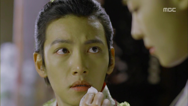 Ta-hwan wanted to be left alone and Seung-nyang, on her way back from attending to Lady Park, decided to follow him to request for Lady Park’s examination again. He expressed how he wanted to die and wished that he was dead when he was back in Daechung Island. He turned around to see the person he missed the most: Seung-nyang and wondered dejectedly if her seeing him in this state would satisfy her, after all the things he had done to betray her..yeah, he just admitted that he recognized her!